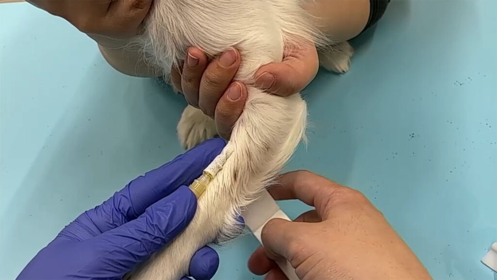 本セミナーでは、留置針設置の基本から実践的なポイントまでを、経験に基づいてご解説いたします。留置針設置も採血と同様に、血管の走行や部位の理解が前提となり、特に橈側皮静脈は直線的で安定しやすく、最も一般的に使用される部位といえます。適切な留置には、シリンジやヘパリン生食などの事前準備に加え、動物の体格に応じた針の選択が重要です。穿刺時には、、、